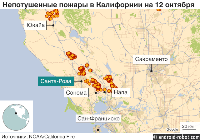 100 человек пропали без вести. Здешние власти докладывают приблизительно о 400 пропавших, их местопребывание устанавливается. В начале рабочей недели губернатор штата Калифорния объявил режим чрезвычайной ситуации.
